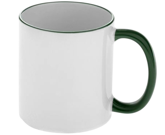Кружка для сублимации белая с зелёной ручкой и ободком (упаковка - 36 шт.)