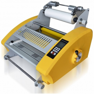 Профессиональный настольный рулонный ламинатор с обрезкой и перфорацией плёнки с рулона, универсален в работе для ламинирования полиграфической продукции различной толщины. Двухстороннее/одностороннее ламинирование силиконовыми валами внутреннего нагрева. Индивидуальная настройка температуры для верхнего и нижнего нагревательного вала вплоть до полного отключения нагрева. ИК датчик контроля температуры. Цифровая регулировка скорости и температуры, программирование памяти на 9 рабочих режимов. LCD дисплей. Регулируемое выпрямление листа при одностороннем ламинировании. Режим ожидания. Автоматическое отключение. Реверс. Легкая установка рулонов, длинные стойки для рулонов большой намотки, простая фиксация натяжения плёнки, автоматическое поддержание режима натяжения плёнки, ступенчатый регулятор сведения валов под различную толщину материала: (стандарт)1.5-3-5-6 мм. (картон).