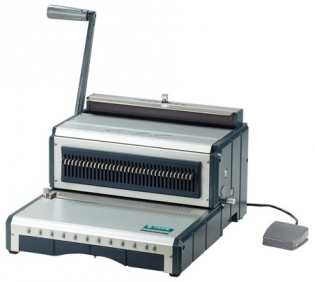 Электрический брошюровщик на металлическую пружину, перфорирует 25 листов, сшивает 120 листов. Круглые отверстия.