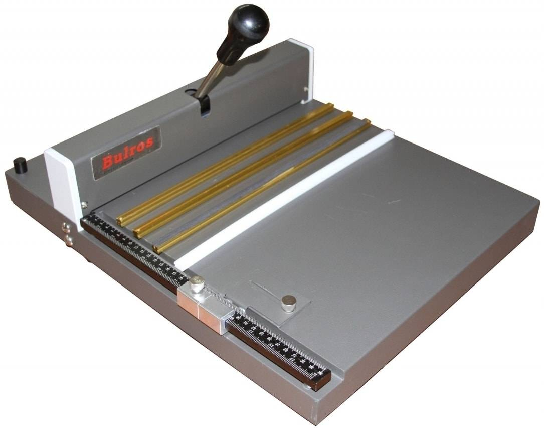 Биговщик-перфоратор Bulros professional series A-350 — аппарат для нанесения прямолинейной бороздки (бига) на лист бумаги при работе с тиражами. Такая бороздка необходима для последующего сгиба по линии плотной бумаги или картона. Биговка выполняется, если есть вероятность повредить нанесённое изображение обычным сгибом: она защищает место сгиба от растрескивания красочного слоя и повреждения материала в месте залома. После такой послепечатной обработки полиграфическая продукция приобретает законченный вид и дополнительную прочность в месте сгиба. Подвижный двухуровневый упор позволяет по толщине блока задать два точных необходимых расстояния для биговки или перфорации обложки.