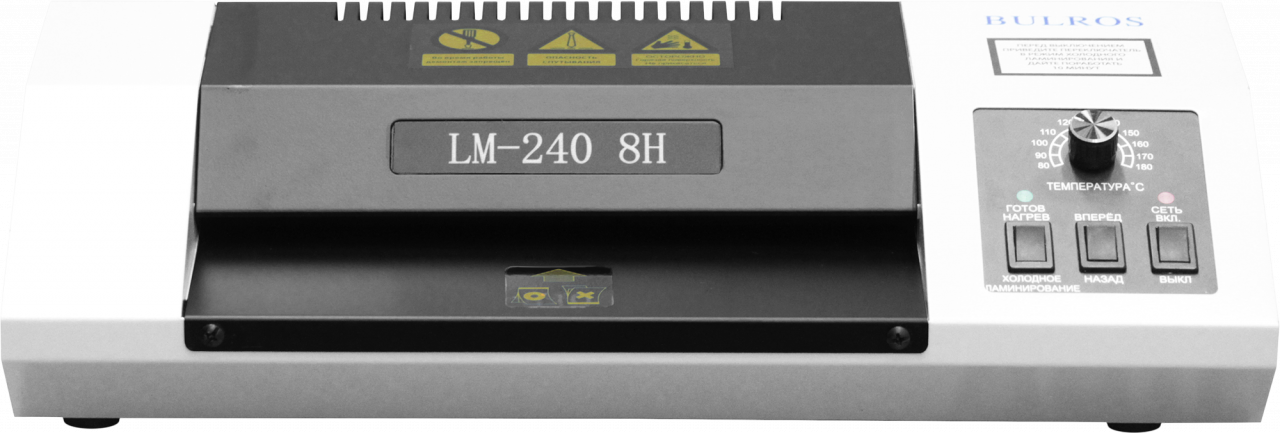 Полупрофессиональный ламинатор Bulros LM-240 8H,формат A4, толщина пленки 250 мкм, 52 см/мин., ширина ламинирования 240 мм